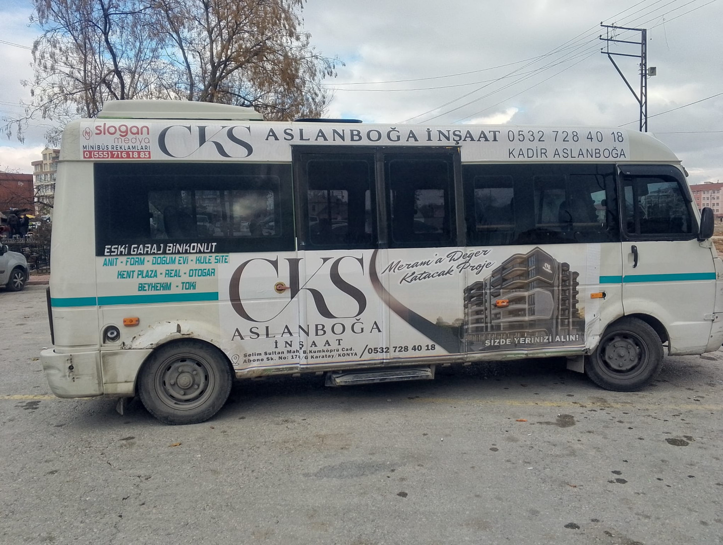 CKS Aslanboğa İnşaat açık hava reklamlarında Slogan Medya'yı tercih etti. CKS Aslanboğa İnşaat, marka bilinirliğini artırmak için Konya Saraçoğlu Minibüs hattı güzergahında karış karış dolaşmaya başladı