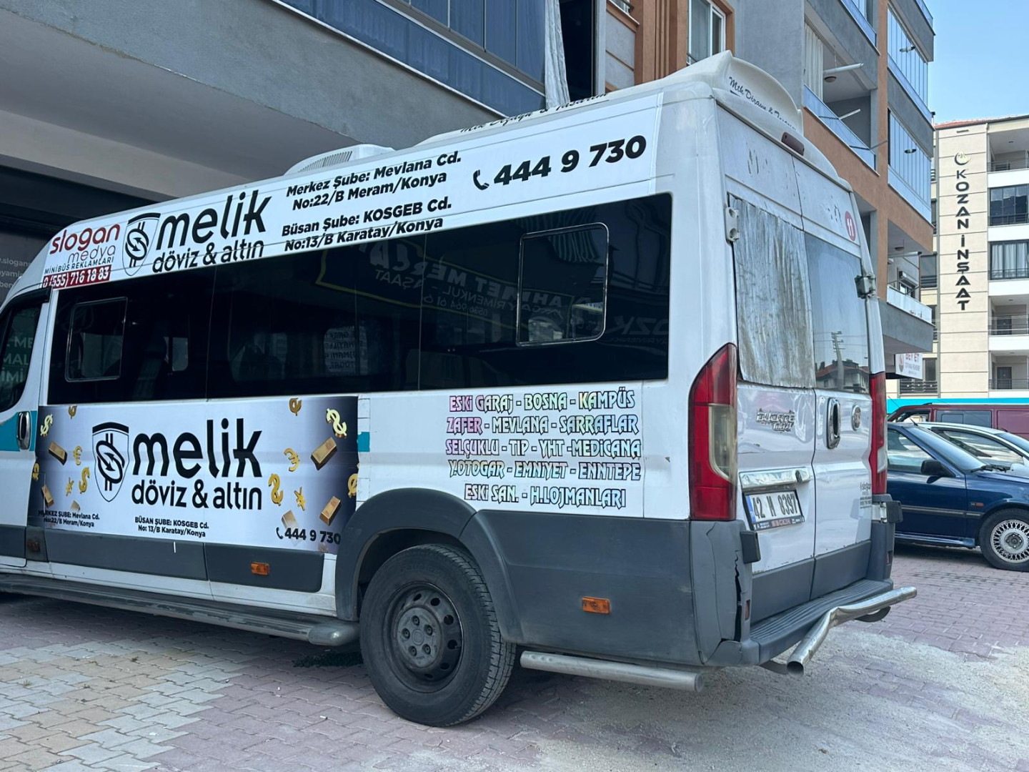 Slogan Medya, Melik Döviz’in marka görünürlüğünü güçlendirmek ve şehirdeki hedef kitlesine etkili bir şekilde ulaşmasını sağlamak amacıyla özel olarak tasarlanmış bir minibüs ve dolmuş reklam kampanyası yürüttü.
